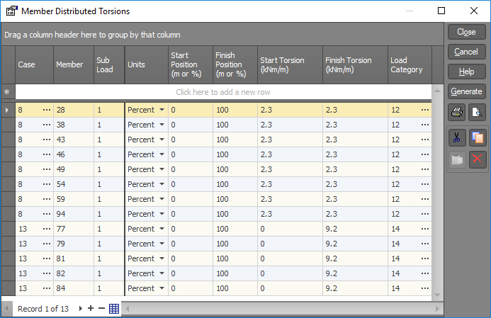 distributed torsion to the same member within the same load case by specifying